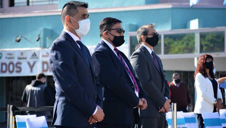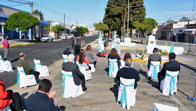 El único que hizo uso de la palabra en el acto central que se realizó al aire libre fue el intendente municipal José Rioseco, quien remarcó “el difícil momento en el que transcurre este nuevo cumpleaños.