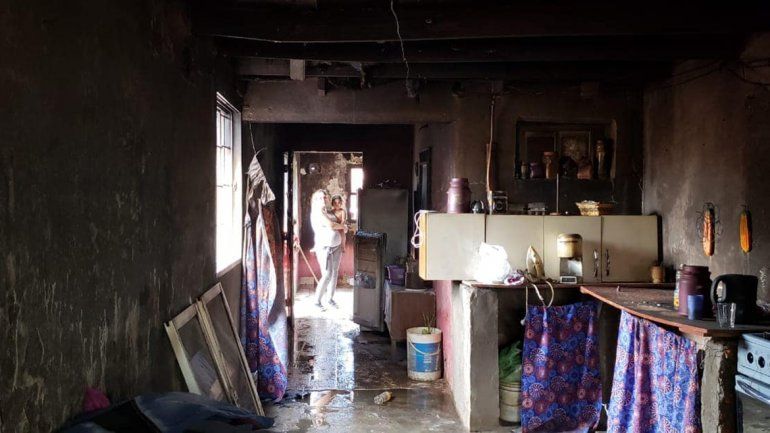El fuego se originó hoy en una de las habitaciones de la vivienda y debieron intervenir tres dotaciones de Bomberos para apaciguar las llamas. Si bien la estructura no tiene peligro de derrumbe, el techo se consumió por completo y perdieron electrodomésticos, ropa, colchones y muebles.