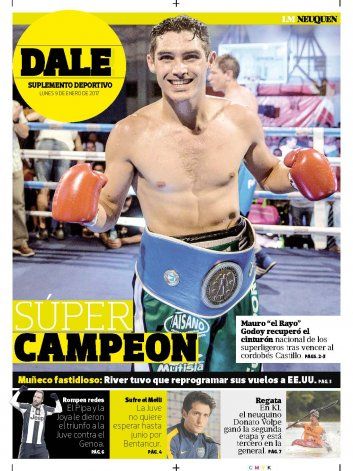 Fue el boxeador del año en el Alto Valle. Y bien temprano, a principios del 2017, vivió una de sus noches soñadas. El sábado 7 Mauro “El Rayo” Godoy consiguió el título argentino al noquear en el Parque Central al cordobés Xavier Luques Castillo. Así consiguió el título argentino de los superligeros. Groso.