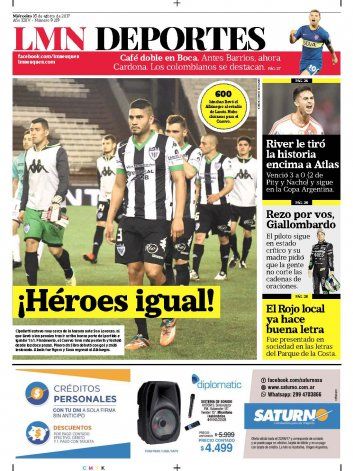 Y llegó el día más esperado por los cipoleños y amantes del fútbol de la región en general. El del partido con San Lorenzo por la Copa Argentina. Y faltó poco para la hazaña. Lo ganaba el albinegro con el gol de Piñero Da Silva de cabeza , lo empató el cuervo faltando poco y en los penales no hubo suerte. Igual el pueblo del Capataz copó su sector en la tribuna de Lanús y hasta gastó por momentos al Ciclón, al grito de “Ole, ole…” (también hubo gaste en redes sociales y un video que se viralizó por las vueltas que dio San Lorenzo para jugar el partido). “Héroes igual”, titulamos.