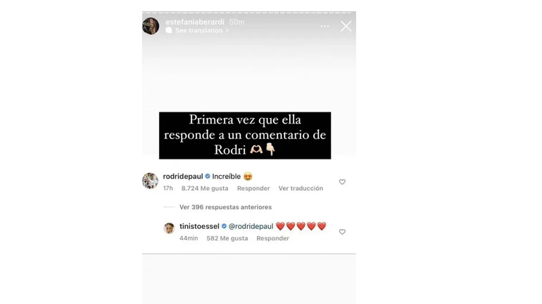 Entonces, De Paul comentó el posteo de ella con un tierno mensaje: "Increíble", reflejó con el emoji de una cara con ojitos con corazones. A lo que ella reaccionó después, por primera vez, con varios corazones color rojo ante sus casi 18 millones de seguidores, en un detalle que marcó Estefanía Berardi.