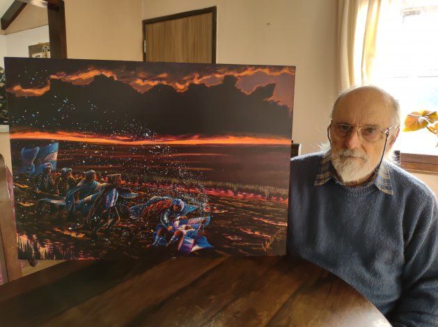 Hoy con 79 años recién cumplidos desde Junín de los Andes, el hombre -oriundo de la localidad bonaerense de Florida- resume sus aventuras: "De chico viví tres años en Mendoza, luego viví San Antonio de Padua, La Lucila, Belgrano; después me divorcié, me fui a vivir a otro lado, viví un año en México, me divorcié dos veces y me casé tres". "Ahora estoy esperando que en los próximos días nazca mi primer nieto", remarcó entusiasmado el artista que, tras exponer en ocasiones en Neuquén Capital, ilustrar publicaciones del dramaturgo Alejandro Finzi y dejar su huella en el Vía Christi con varios relieves, en el último tiempo comenzó a refugiarse en la escritura.