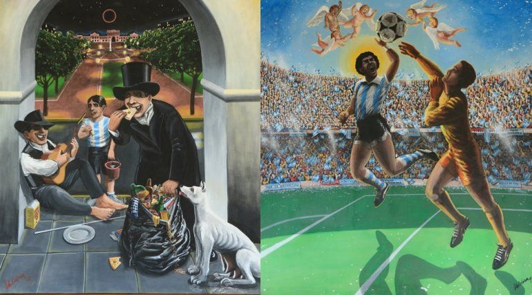 Maradona, Gardel, la pizza, el fútbol, el Che y otros íconos de la argentinidad confluyen en la obra de Carlos Valdora, un artista que tuvo sus idas y venidas con la pintura y que apostó con su familia por Junín de los Andes como su hogar, luego de dar vuelta la página de la publicidad en la inmensa y caótica Buenos Aires.