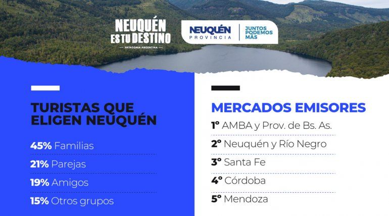 Un estudio realizado por el Ministerio de Turismo reveló que casi la mitad de los turistas que eligen Neuquén son grupos familiares, mientras que la mayoría de los visitantes fue del conglomerado AMBA y la provincia de Buenos Aires.