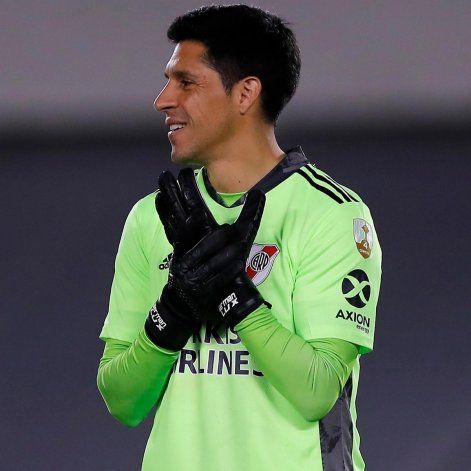 Enzo Pérez fue el arquero improvisado de River, ante 20 casos de Covid-19 positivo en el plantel. El experimentado volante tuvo que aprender algunos trucos de la posición y sus compañeros, tanto en el campo de juego, como los que no pudieron estar, lo acompañaron en todos los detalles.