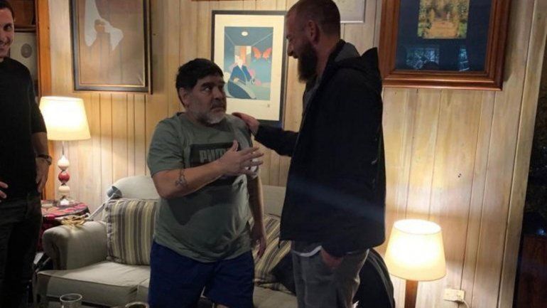 En otra de sus actividades del día, De Rossi cumplió un viejo sueño de estar cara a cara con Maradona. Fue a la casa del Diego, se sacaron fotos y le pidió que apoye al equipo “Te quiero en la Bombonera alentando”.