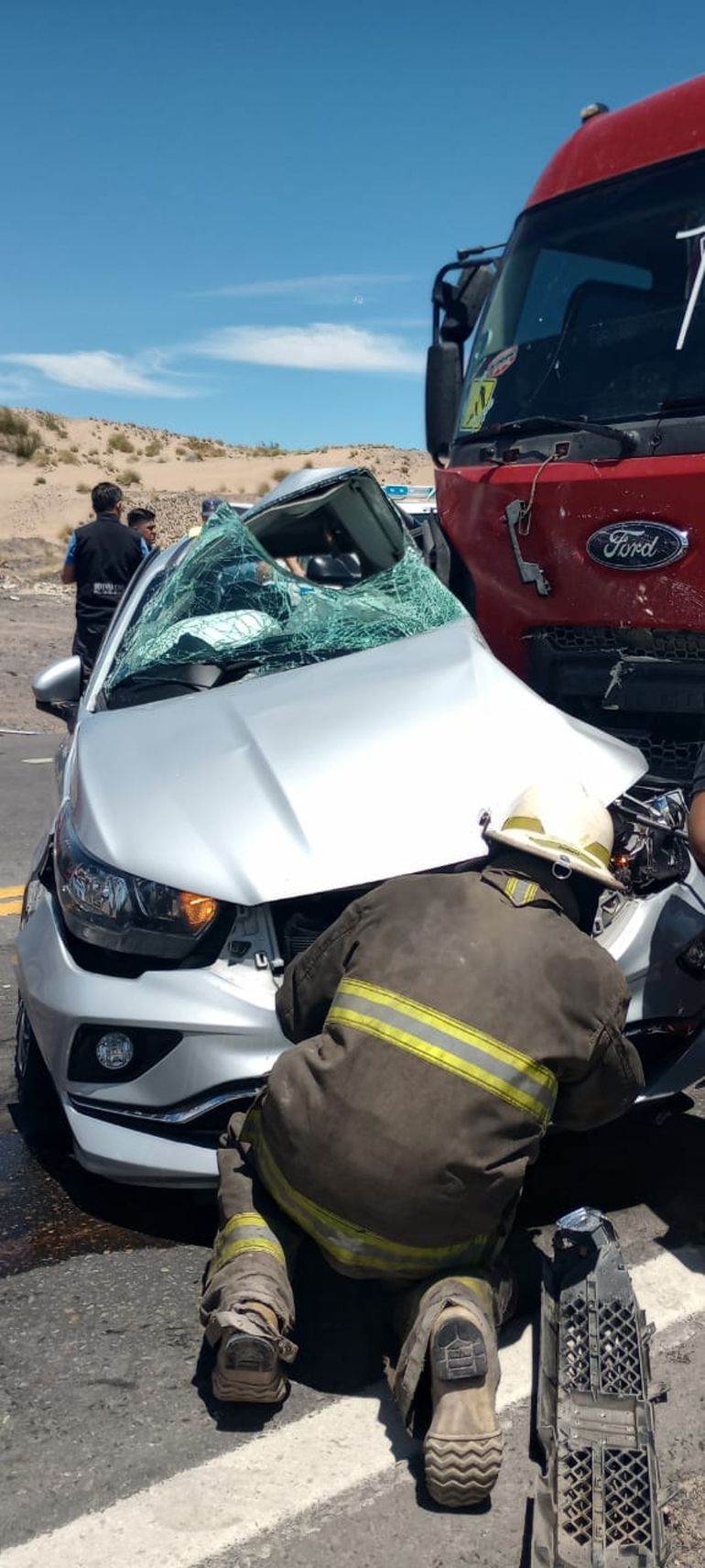 "El vehículo fue arrastrado más de 40 metros", indicó a LU5 el subcomisario Marcelo Campos, de la Seguridad de Tránsito de Neuquén. "Los cuerpos de los ocupantes quedaron dentro del habitáculo y debieron ser rescatados por los Bomberos", agregó