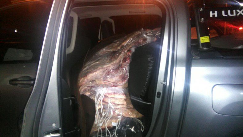 El secuestro se llevó a cabo a las 2:20 de la madrugada en el control denominado Puente Dique, a pocos kilómetros de la ciudad de Catriel. La policía encontró 75 costillares de carne vacuna en el interior de una camioneta Toyota Hilux gris último modelo, sin autorización ni cadena de frío.