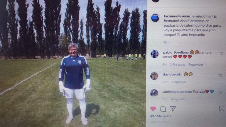 "Te venció nomás hermano. Ahora descansa en paz, basta de sufrir! Como dice Gusty, voy a preguntarme para que y no por qué! Te amo hermanito", publicó en su cuenta de la red social con una foto de Marcelo atajando en los torneos comerciales con la camiseta de argentina.