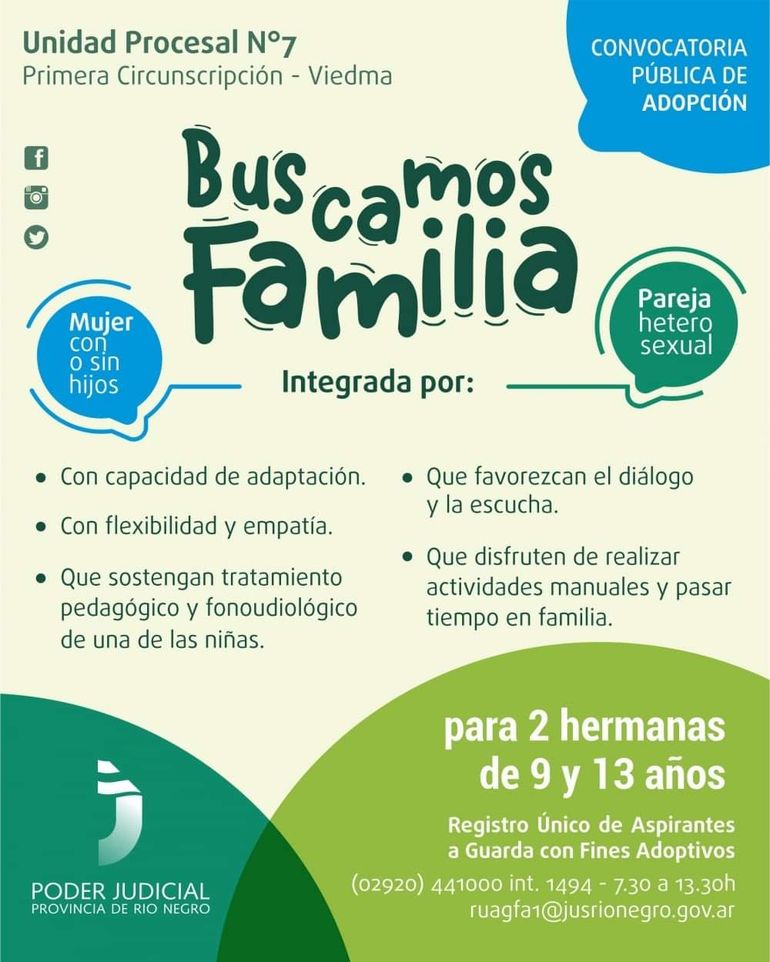 La Directora Nacional de Políticas Antidiscriminatorias del INADI, la cipoleña Ornella Infante, intervino por una extraña clausula que quedó al descubierto durante la convocatoria pública para adoptar a dos hermanitas de 9 y 13 años en Río Negro. Según publicaron, únicamente podían postularse mujeres con o sin hijos y parejas heterosexuales, expresando una clara discriminación hacia otros grupos que no eran considerados como aptos para brindar amor y contención a las niñas.