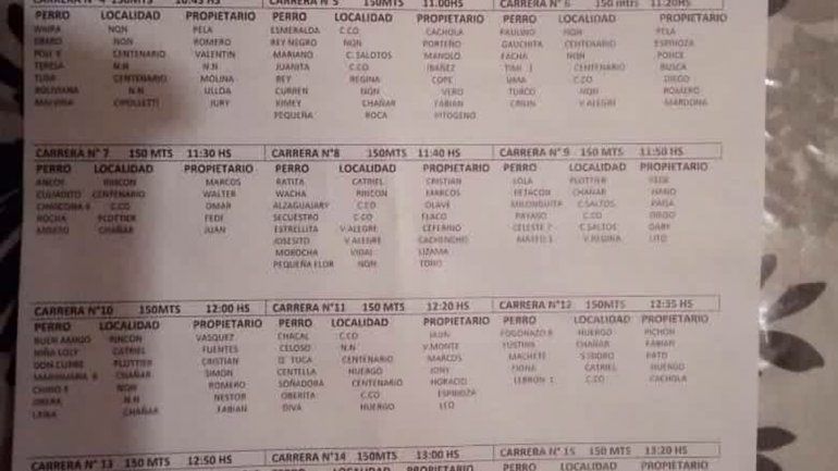 Según indicaron desde la ONG en el lugar estaban programadas al menos 29 carreras con perros de distintos puntos de Neuquén y otras provincias. La mayoría de ellas se habría concretado ya que la actividad había comenzado a media mañana del domingo.