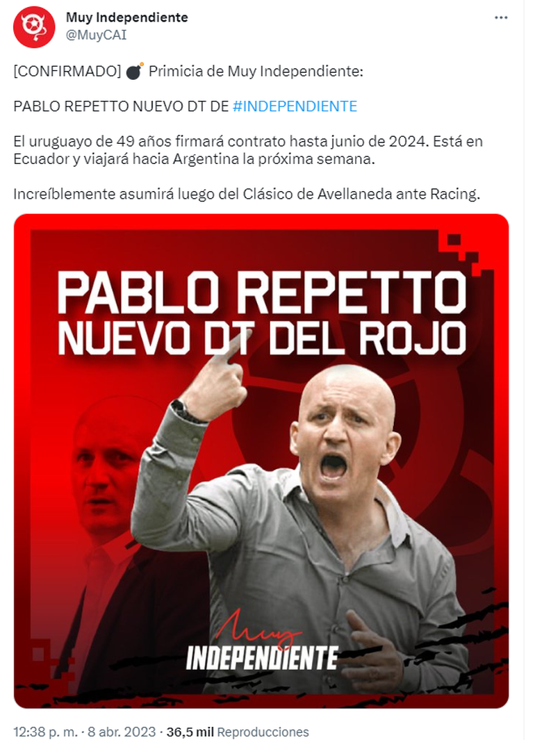 El exjugador asumió en forma interina, logró un triunfo en los 32vos de final de la Copa Argentina ante el modesto Ciudad de Bolívar (3-0) y en la fecha pasada sacó un valioso empate en la cancha de San Lorenzo (0-0), de todas maneras se espera que en los próximos días asuma como DT el uruguayo Pablo Repetto.