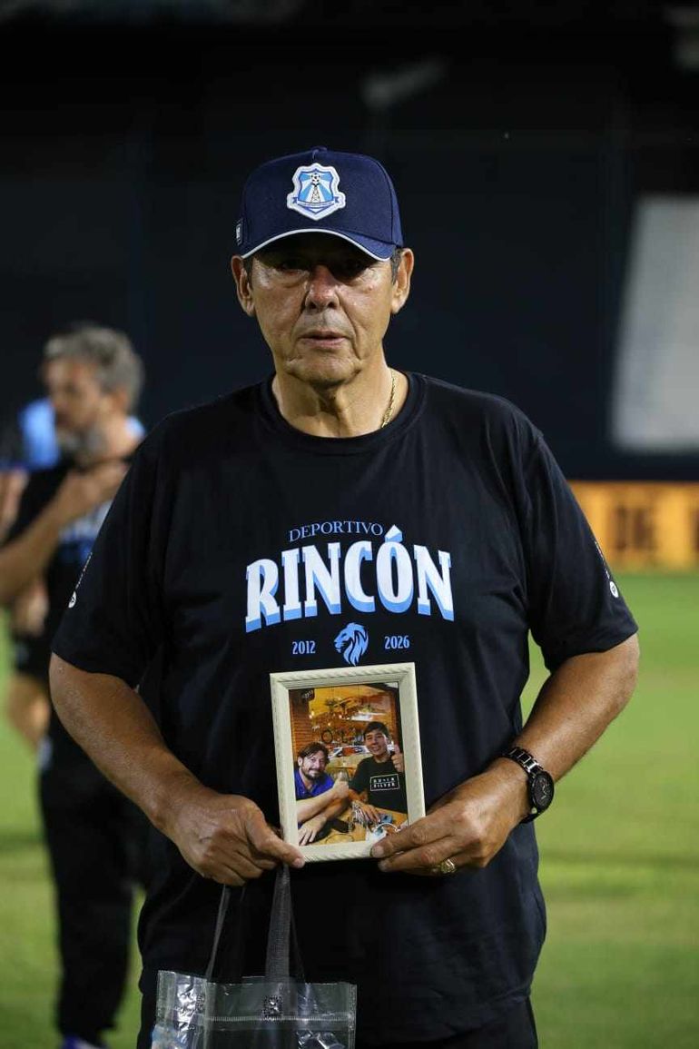 En la tribuna de Rincón hay una bandera grande que dice "se gana, se pierde, pero jamás se abandona". Es la misma que acompaña al equipo en todos los partidos de local.