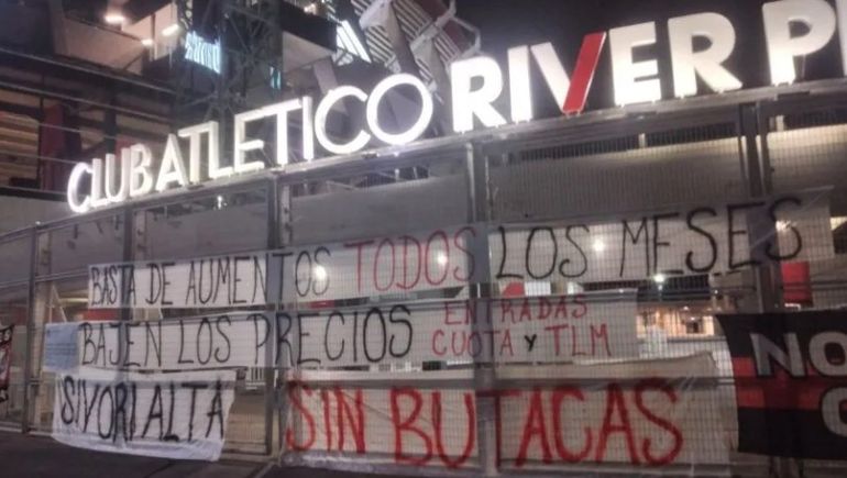 Es que River decidió aumentar un 60% en su valor las entradas, la cuota y el sistema Tu Lugar en el Monumental, provocando que se haga casi imposible para los hinchas acceder a la cancha. Por tal motivo, los hinchas decidieron acercarse a las inmediaciones del estadio y colgaron banderas que llevaban las leyendas "basta de aumentos todos los meses", "bajen los precios" y, además, reclamaron por la tribuna Sivori alta que no tiene butaca.