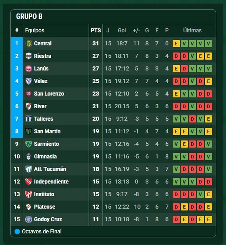 Si bien el elenco millonario había conseguido un colchón importante de puntos por lo hecho en el primer semestre, la reciente racha adversa de seis derrotas en los últimos siete encuentros, con el agregado especial de que una de ellas fue en el Superclásico ante Boca por 2-0, generaron que el elenco dirigido por Marcelo Gallardo se ubique en puestos de Copa Sudamericana.