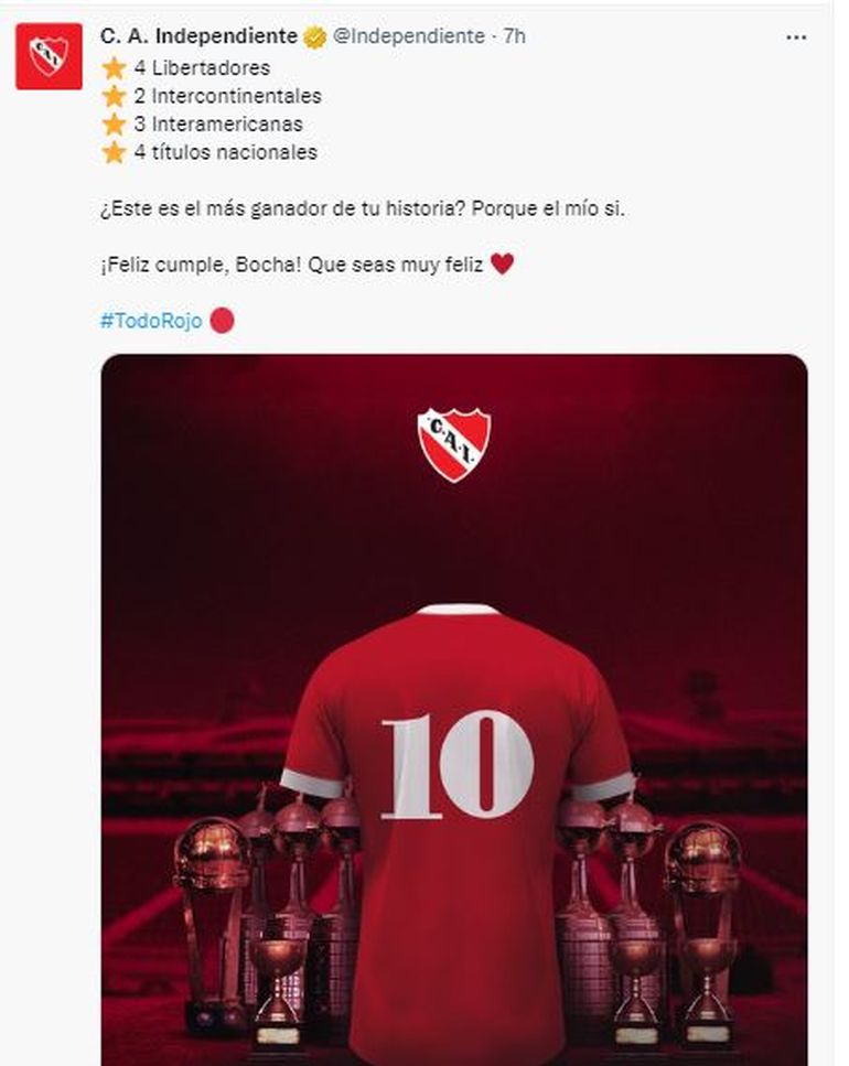 El plantel completo del Rojo recibió a Bochini con una torta en el campo de juego. Después de cantarle el feliz cumpleaños, los jugadores le hicieron un pasillo de honor donde el ídolo recibió algunas palmadas en la espalda al grito de “Vamos Bocha, vamos”. El momento quedó retratado en las redes sociales del club.