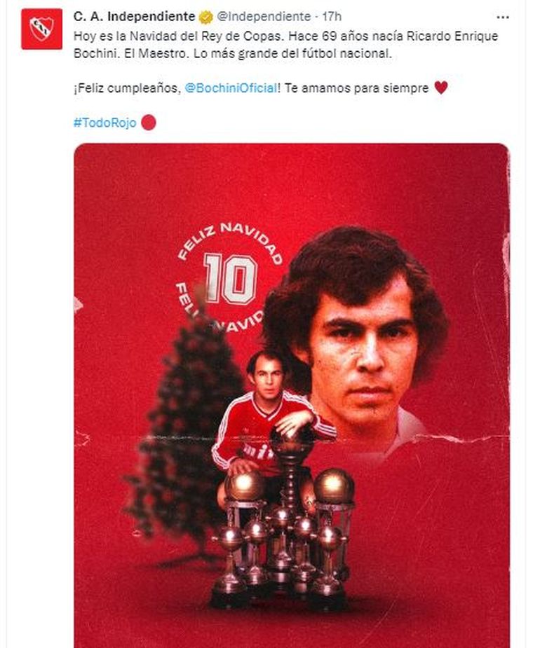 El máximo ídolo de Independiente de Avellaneda cumple años. Ricardo Enrique Bochini está celebrando sus 69 años. Como parte de los festejos, el cuerpo técnico y los jugadores se tomaron unos minutos para el Bocha.