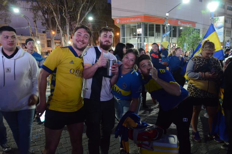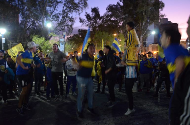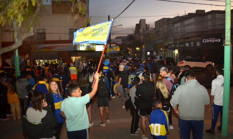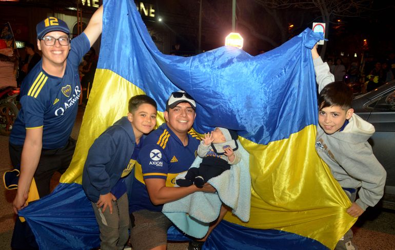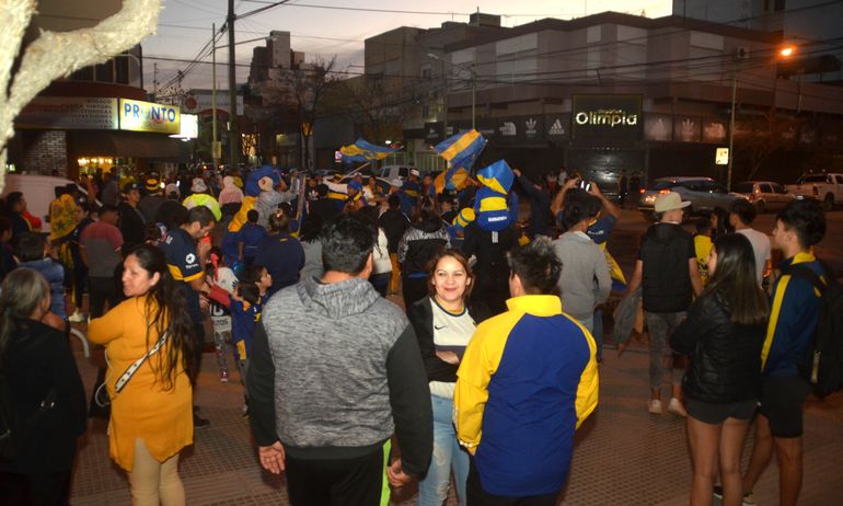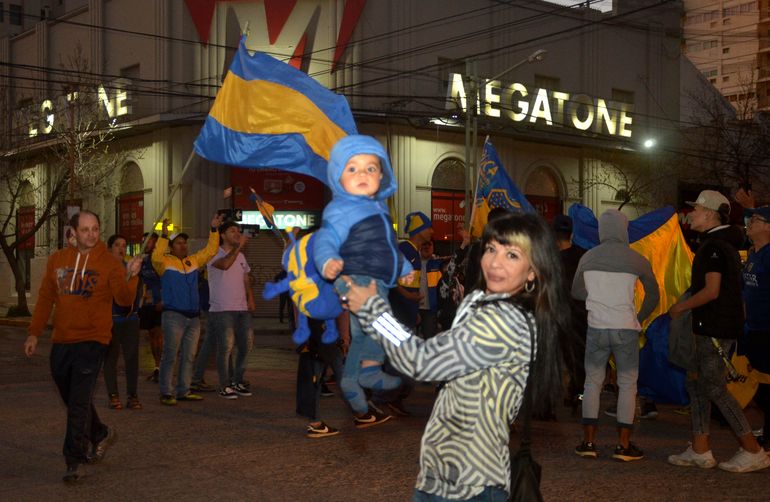 Familias enteras, gente de todas las edades y hasta mascotas con los colores azul y oro. Bocinazos, cantos, banderas, gorros y vinchas. Una fiesta del pueblo azul y oro.