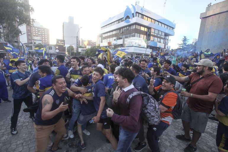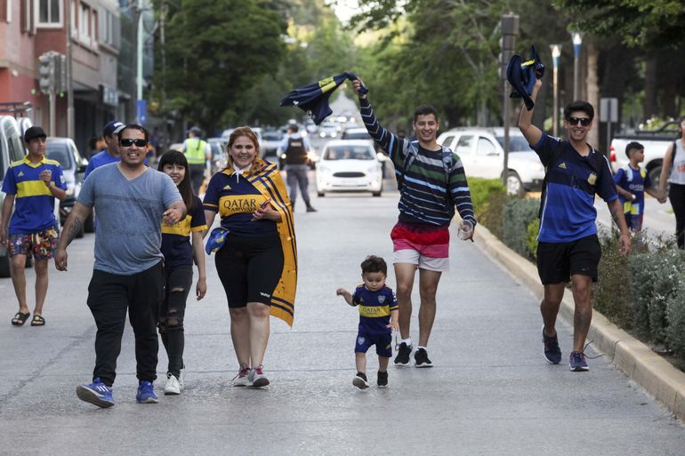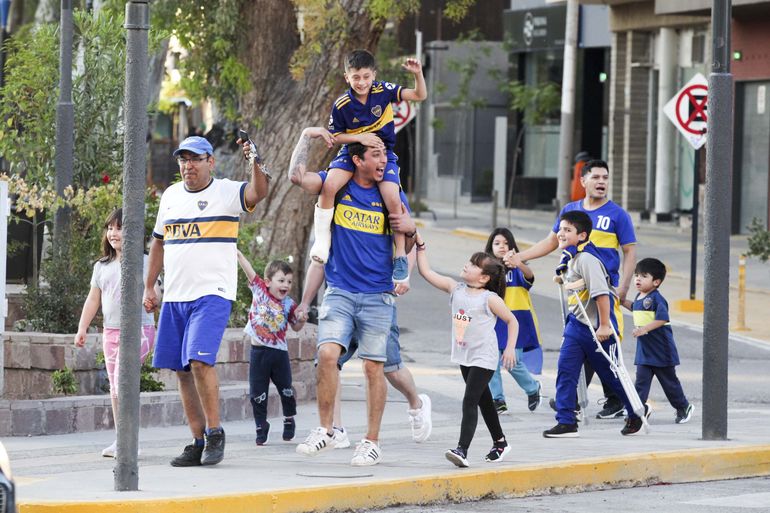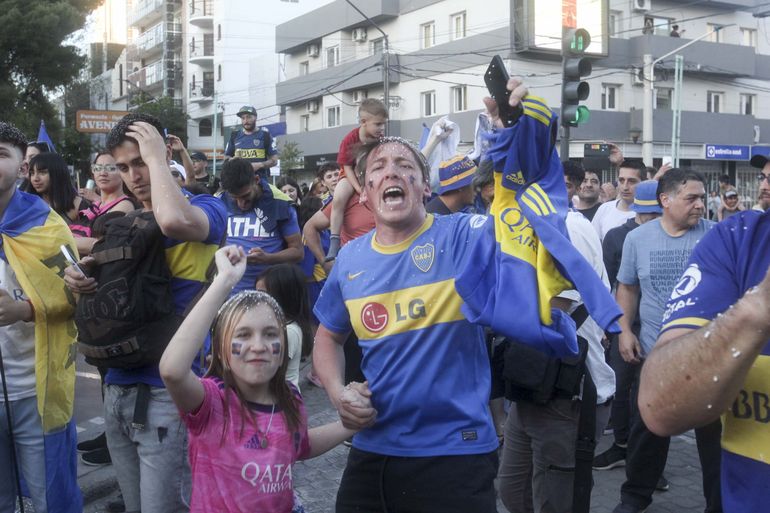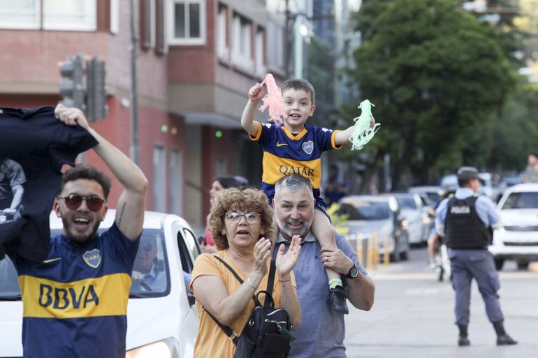 Gente de todas las edades, con gorro, bandera y vincha y un par de gritos de guerra. "Es para vos, gallina p...", a pesar de la ayuda del eterno rival, y el "Boca ya salió campeón, se lo dedicamo' a todos...".