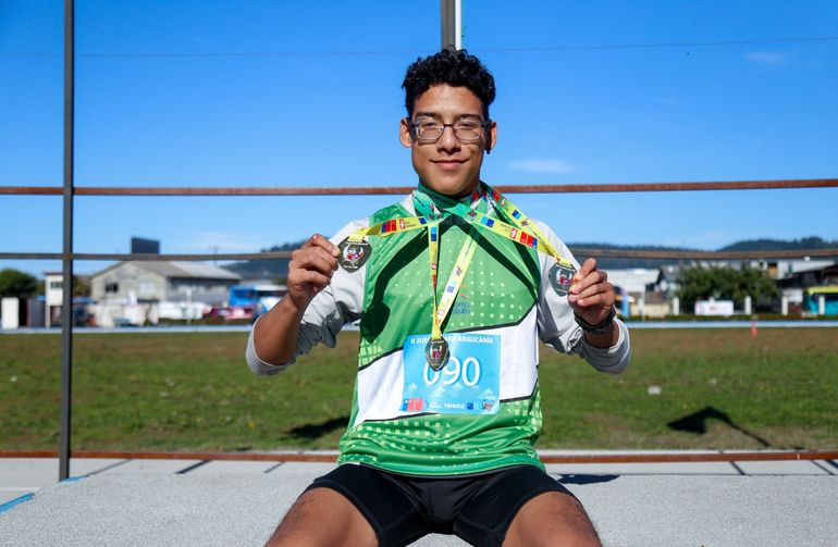 En la pista del Campo de Deportes Ñielol, Lautaro Aguilar Tracana completó su triplete dorado (había ganado en disco y bala) con el triunfo en el lanzamiento de la jabalina con una marca de 18,49 metros.