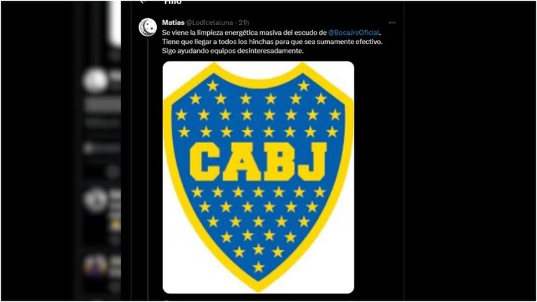 “Se viene la limpieza energética masiva del escudo de @BocaJrsOficial. Tiene que llegar a todos los hinchas para que sea sumamente efectivo. Sigo ayudando equipos desinteresadamente”, aseguró en su twitter antes de agregar: “En breve todo lo necesario”.