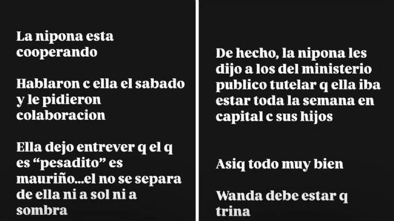 “Milagrosamente, Wanda habló con sus hijas y todo tranquilo. No hubo quilombo ni drama. Las niñas están contentas y sin angustia”, comenzó escribiendo, confirmando que las pequeñas pudieron comunicarse con su mamá de buena manera.