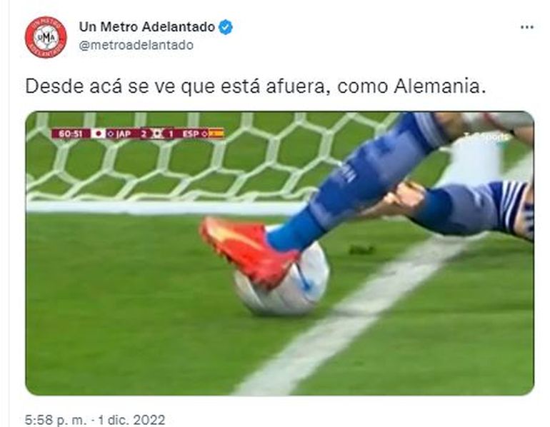 No obstante, Japón sorprendió en el segundo tiempo y alcanzó el empate con un fuerte remate de Ritsu Doan después de una mala salida desde el fondo de Unai Simón, mientras que Ao Tanaka puso en ventaja al seleccionado asiático en una jugada sumamente polémica: primero el tanto fue anulado por considerar que la pelota se había ido por la línea de fondo antes del centro que culminó en el gol, pero luego intervino el VAR y lo convalidó.