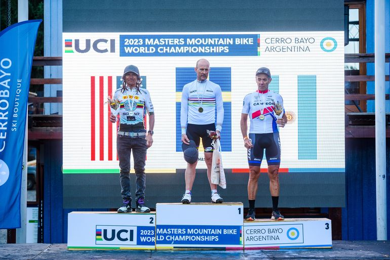 En esta división reservada a deportistas de 60 a 64 años Confalonieri quedó tercero detrás del sueco Tommy Olsson que volvió a mostrar en pista su talento para convertirse en bicampeón y de la leyenda del MTB, el estadounidense Tinker Juárez.