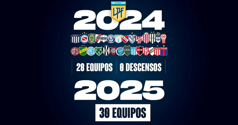 Este nuevo formato tiene como novedad importante la quita de los descensos en esta temporada, punto no menor y que puso a Argentina en el plano mundial. Es decir, habrá una ampliación del torneo a 30 equipos, que se compondrá de los 28 actuales y dos clubes que ascenderán desde la Primera Nacional (Aldosivi es el primero, tras vencer a San Martín de Tucumán en la final; el otro saldrá del Reducido).