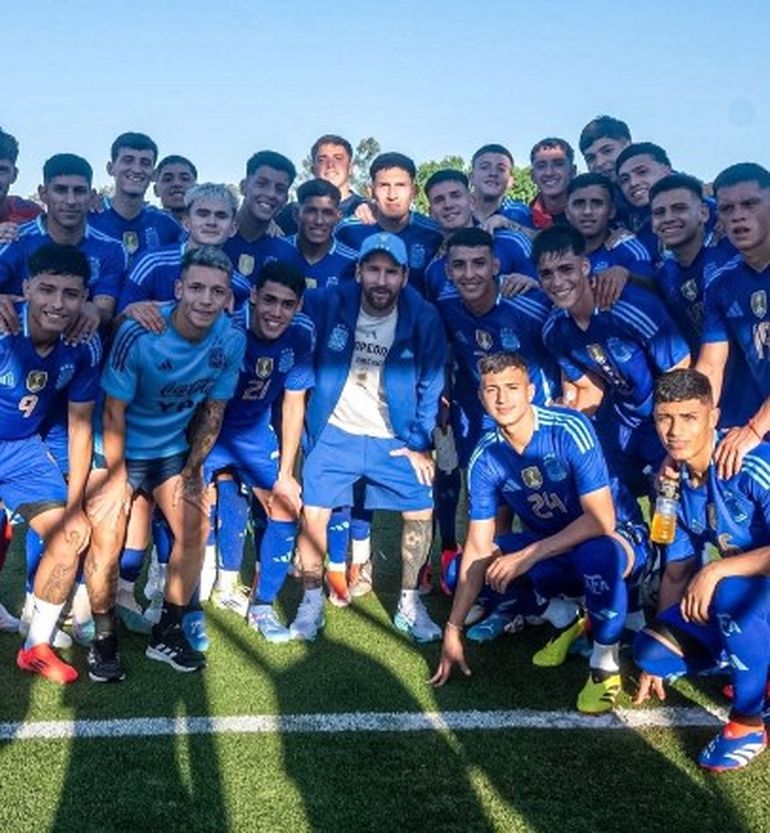 Es que Lio sorprendió con su visita al plantel del seleccionado sub 20, dirigido por su amigo Javier Mascherano, que disputó un amistoso este viernes desde las 16 horas en el Predio de AFA. Allí los jugadores que conforman el plantel, con Claudio Echeverri y Franco Mastantuono como las figuras de mayor relevancia, aprovecharon su presencia para tomarse una foto con el diez.