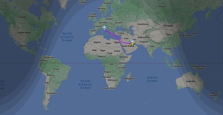 Ese vuelo partió a las 6.25 desde Doha (0.25 hora argentina) y aproximadamente a las 12 (8 hora argentina) llegó a Roma, donde hará una escala técnica de dos horas y luego despegará rumbo a Buenos Aires.