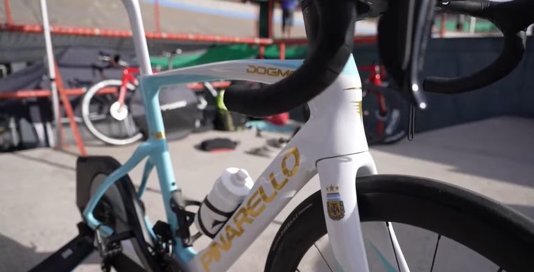 El histórico Gabriel Curuchet le facilitó para entrenar su bicicleta de la marca Pinarello, que está pintada de celeste y blanco. "Es como la Ferrari de las bicis. Me la prestó Gabi porque no tengo la mía acá. Les agradezco a ellos, me abrieron las puertas del velódromo, de sus conocimientos. Todos son fanáticos de los fierros, entonces se da algo mutuo", afirmó.