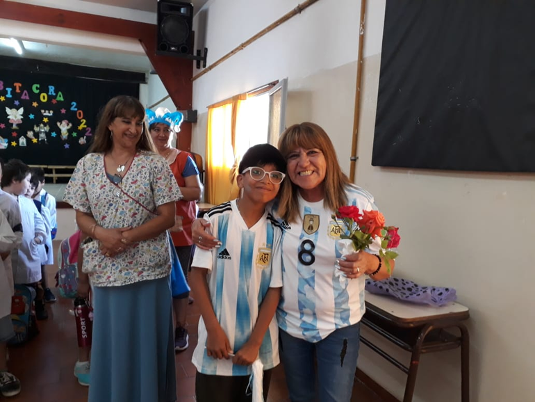 "Un compañerito de Sofi, del turno mañana, de repente se me acercó y me entregó una rosa. Lo veo y estaba emocionado. Y obvio a mi también se me erizó la piel. Es hermoso todo esto, increíble lo que genera el fútbol, el Mundial y hasta donde llegó el Huevo", confesó sorprendida y reconfortada Sara a LM Neuquén.