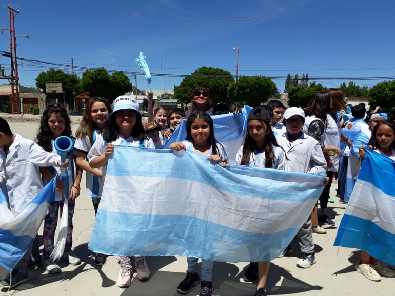 Resulta que en la escuela a la que se formó Marquitos, en la popular 114 y en la 99 a la que asiste su hermosa sobrina Sofía (hija de Walter), realizaron banderazos para alentar a la selección y al Huevo, claro.