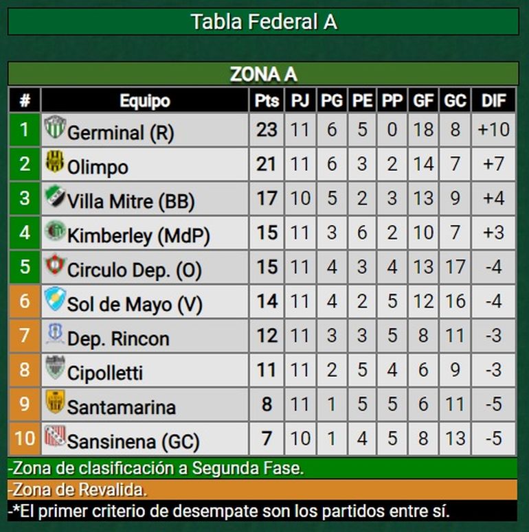 Además, Germinal de Rawson volvió al triunfo luego de tres empates consecutivos y aprovechó la igualdad de Olimpo ante Cipolletti para recuperar la condición de único líder en la zona A. Agustín Jara en contra y el goleador Ricardo Dichiara marcaron en el primer cuarto de hora del complemento en el 2-0 sobre Santamarina de Tandil.