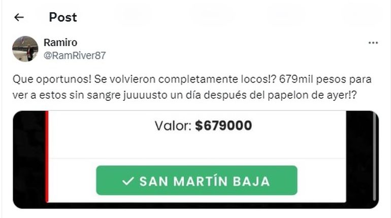 A través de las redes sociales, los hinchas expresaron su descontento por la decisión y por el momento en que fue comunicada. "Que buen timing muchachos, los felicito", les respondió irónicamente un fanático. "Mucho tacto", manifestó otro en la misma línea. Otro fue más crítico y escribió "700 dólares para ver el equipo de Demichelis". En ese sentido, también se leyó: "Unas ganas de gastarme 100 lucas para ver a este equipo, tal cual".