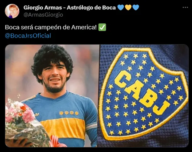 Con este panorama, el astrólogo de Boca, Giorgio Armas, vaticinó el resultado que se puede dar en la final: "Gracias, Dios mío! Disfruten bosteros, Les daré la 7ma", escribió en su cuenta de Twitter.