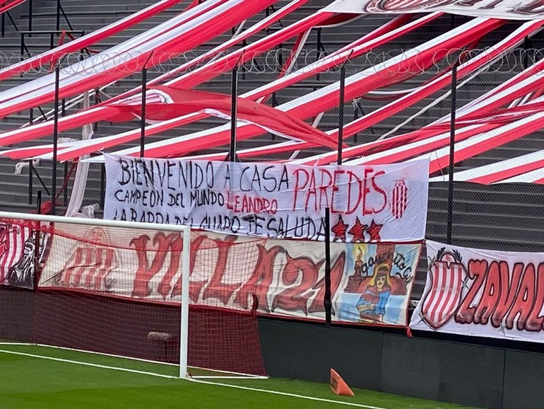 Pero esto no fue todo. Y es que en la popular local también apareció una bandera dedicada a Leandro Paredes. Detrás de uno de los arcos, la gente de Barracas colgó un trapo que decía: "Bienvenido a casa, campeón del mundo. La barra del Guapo te saluda. Leandro Paredes".