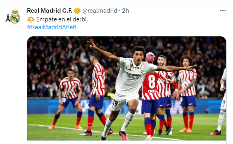 El Real Madrid y el Atlético de Madrid igualaron 1-1 por el "Derbi madrileño" de la fecha 23 de La Liga de España, en el Estadio Santiago Bernabéu, y ambos le pierden pisada al líder absoluto, el Barcelona de Xavi Hernández.
