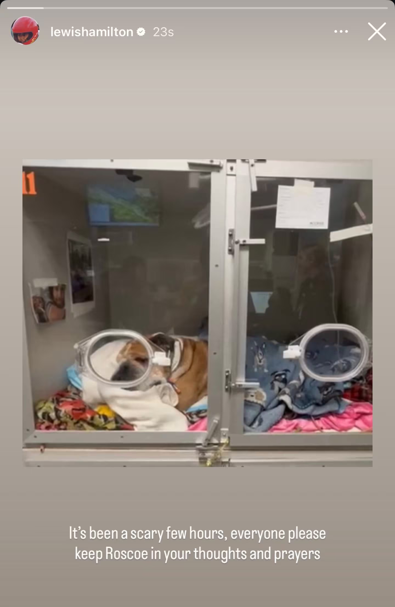 Hace algunos días, Hamilton compartió una foto de su mascota en una clínica veterinaria junto al mensaje: “Han sido unas horas aterradoras. Por favor, tengan a Roscoe en sus pensamientos y oraciones”. “Ya tiene 12 años y medio, así que es un perrito mayor”, había comentado el siete veces campeón del mundo en mayo, en la previa del Gran Premio de Emilia Romañana en Ímola. Y agregó: “Tuvo neumonía, pero ya está mejor. Sin duda, cada vez que recibo un mensaje de texto de la señora que lo cuida, se me detiene el corazón”.