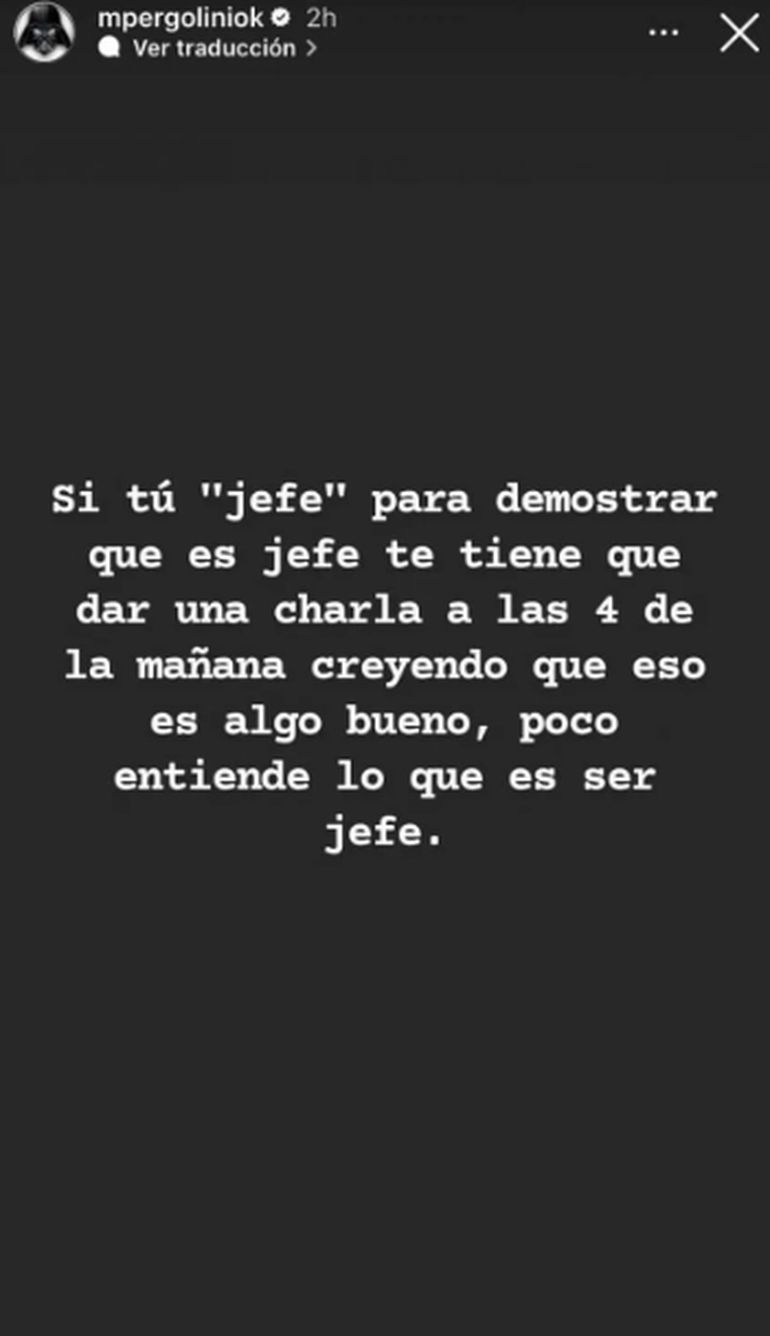 "Si tu 'jefe' para demostrar que es jefe te tiene que dar una charla a las 4 de la mañana creyendo que eso es algo bueno, poco entiende lo que es ser jefe", disparó Mario Pergolini en contra de Riquelme por la reunión a altas horas de la madrugada.