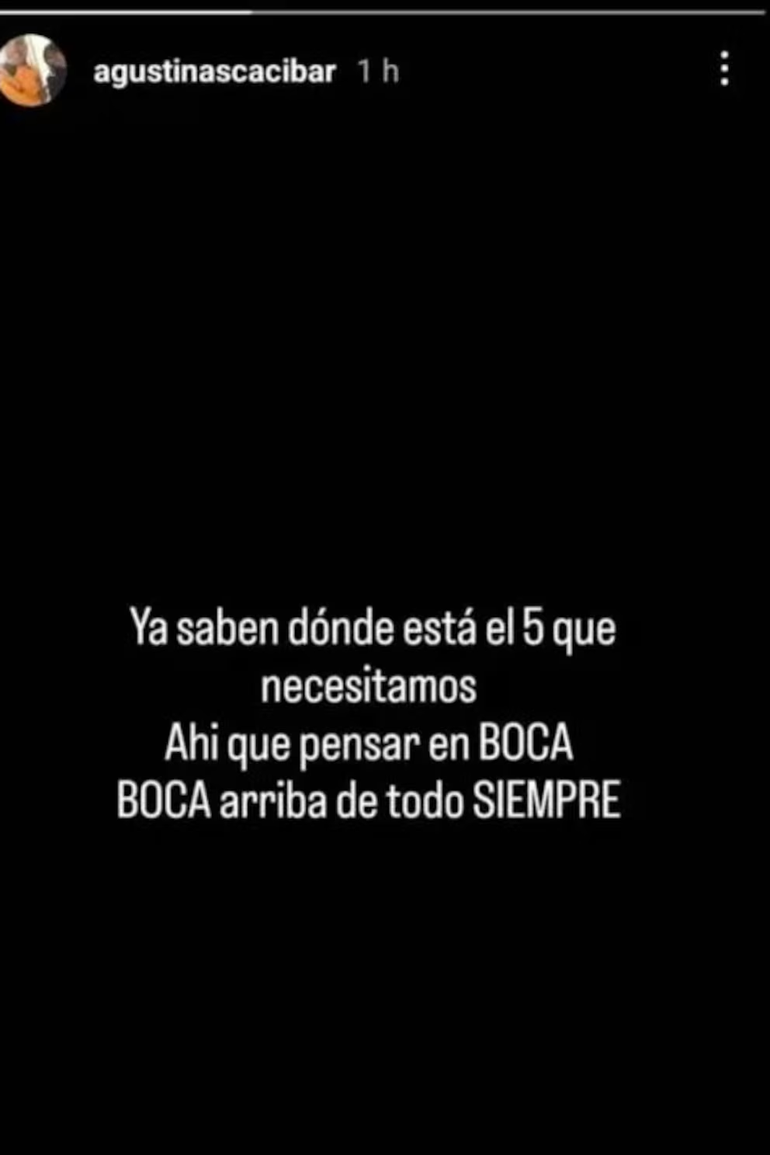 Agustín Ascacibar, hermano mayor de Santiago y fanático del club de La Ribera, lanzó un llamativo mensaje cuando la igualdad ante el Bicho de La Paternal fue consumada: “Ya saben dónde está el 5 que necesitamos. Hay que pensar en Boca. Boca, arriba de todo, siempre”.