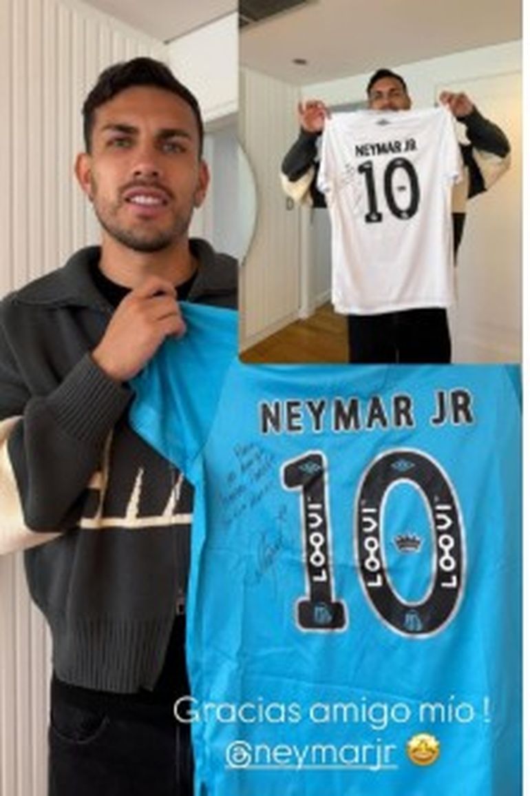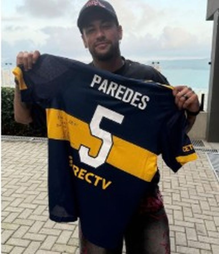 Horas más tardes del show que dio Paredes en el Gigante de Arroyito, siendo claramente el mejor jugador en la actualidad de Boca, posó en sus redes sociales con una camiseta del Santos de Brasil y el dorsal de Ney, junto a un agradecimiento: "Gracias amigo mio", escribió en la historia. La dedicatoria del brasileño dice: “Para mi amigo Leandro Paredes, un gran abrazo”.
