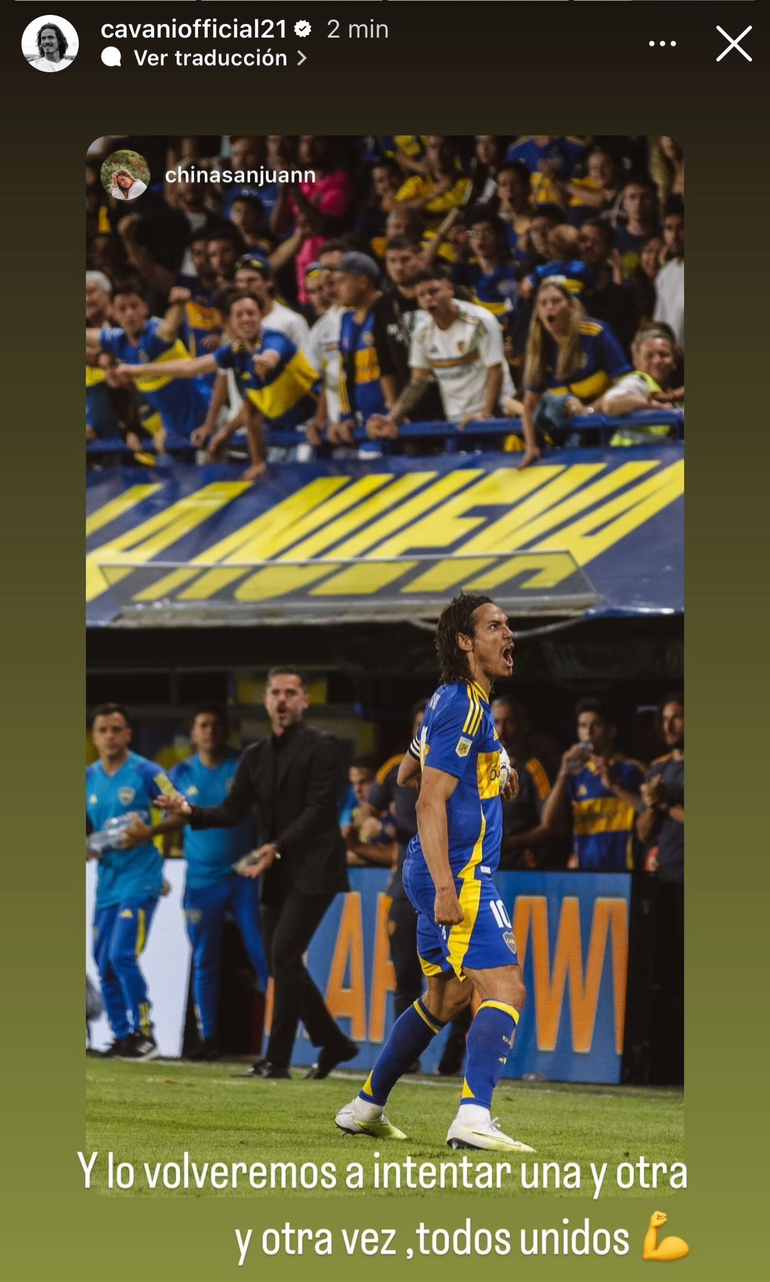 Luego del encuentro, Cavani compartió en su cuenta de Instagram una de las fotos del partido y agregó un mensaje junto a esta que decía: “Y lo volveremos a intentar una y otra vez, todos unidos”.