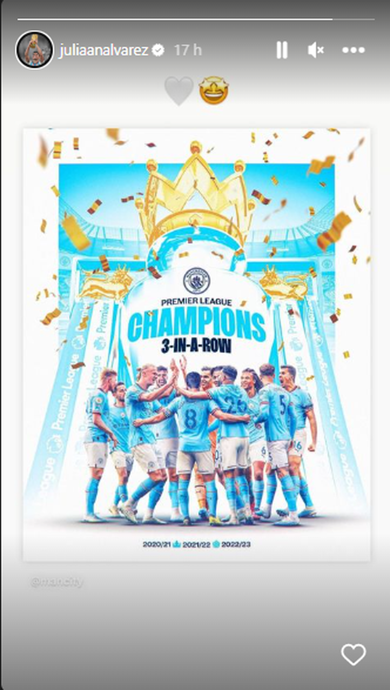 Por lo pronto, para seguir en sintonía respecto a cómo se mostró tras la obtención del campeonato, Julián Álvarez aguardará a que finalice el partido frente al Chelsea para continuar con los festejos. Una vez que estos culminen, será tiempo de enfocarse en la final de la Champions League a disputarse el próximo 10 de junio.