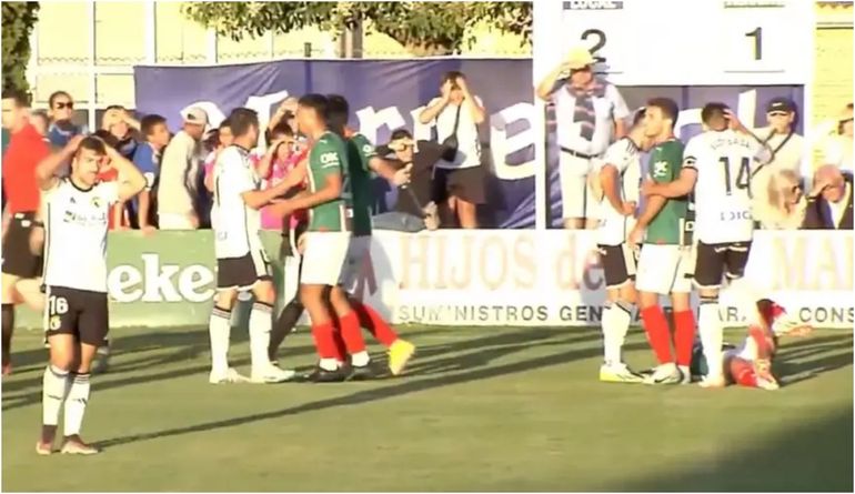 El árbitro del partido mostró la tarjeta amarilla al jugador, pero rápidamente comprendió la gravedad de la situación. Tanto los compañeros del hijo del Cholo Simeone como los de Burgos se llevaban las manos a la cabeza al observar la fractura en su pierna izquierda.