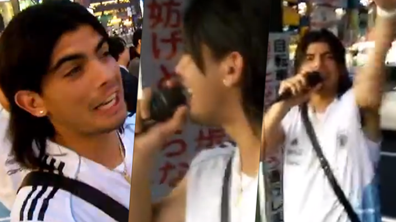 En el video se ve a Ever Banega, caminando por las calles de Tokio, ciudad por la que pasó el equipo antes de arribar a Beijing para disputar el torneo. De fondo, una voz que se escucha por unos parlantes.