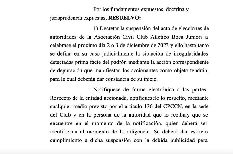 Boca tenía programadas las elecciones que se realizan cada cuatro años para el próximo domingo 3 de diciembre en La Bombonera. Sin embargo, el candidato a presidente de la oposición, Andrés Ibarra realizó una denuncia por irregularidades en el padrón. La jueza Alejandra Abrevaya, del juzgado civil Nº 11, hizo lugar al pedido de quien encabeza la fórmula que integra Mauricio Macri y decidió suspender los comicios.