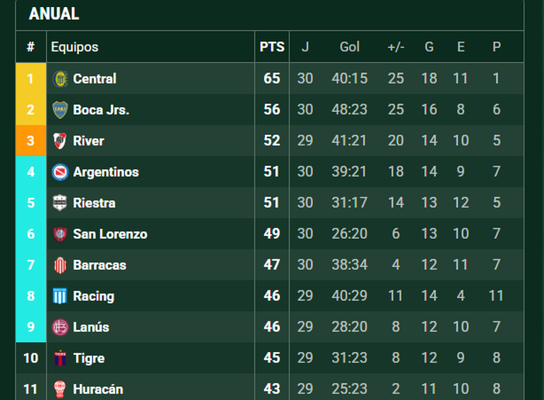 El reglamento vigente indica que los primeros tres de la tabla anual se clasifican a la Libertadores, aunque el que ocupa el último lugar del podio deberá disputar la fase previa. Justamente por eso, el objetivo del Xeneize es terminar en el top 2 y evitar revivir el fantasma del repechaje. En 2022, Argentinos Juniors había conseguido su lugar directo con 67 puntos; en 2023, San Lorenzo lo logró con 64; y en 2024, River con 70. Con el nuevo formato de 32 fechas, la proyección ubica el piso de clasificación entre 57 y 58 unidades.