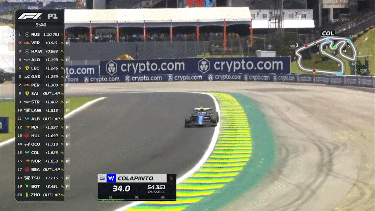 Más temprano, Colapinto finalizó decimotercero en la prueba libre del Gran Premio de Brasil que se disputa en el Autódromo José Carlos Pace de Interlagos.